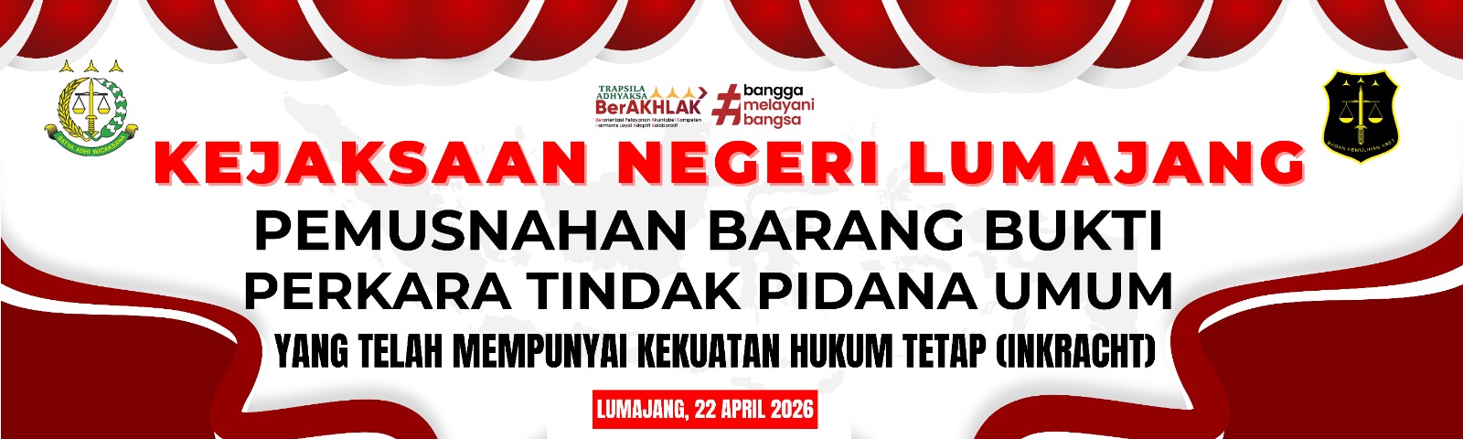 Lumajang – Kejaksaan Negeri (Kejari) Lumajang melaksanakan pemusnahan barang bukti tindak pidana umum yang telah berkekuatan hukum tetap (inkracht), Rabu (22/04/2026).