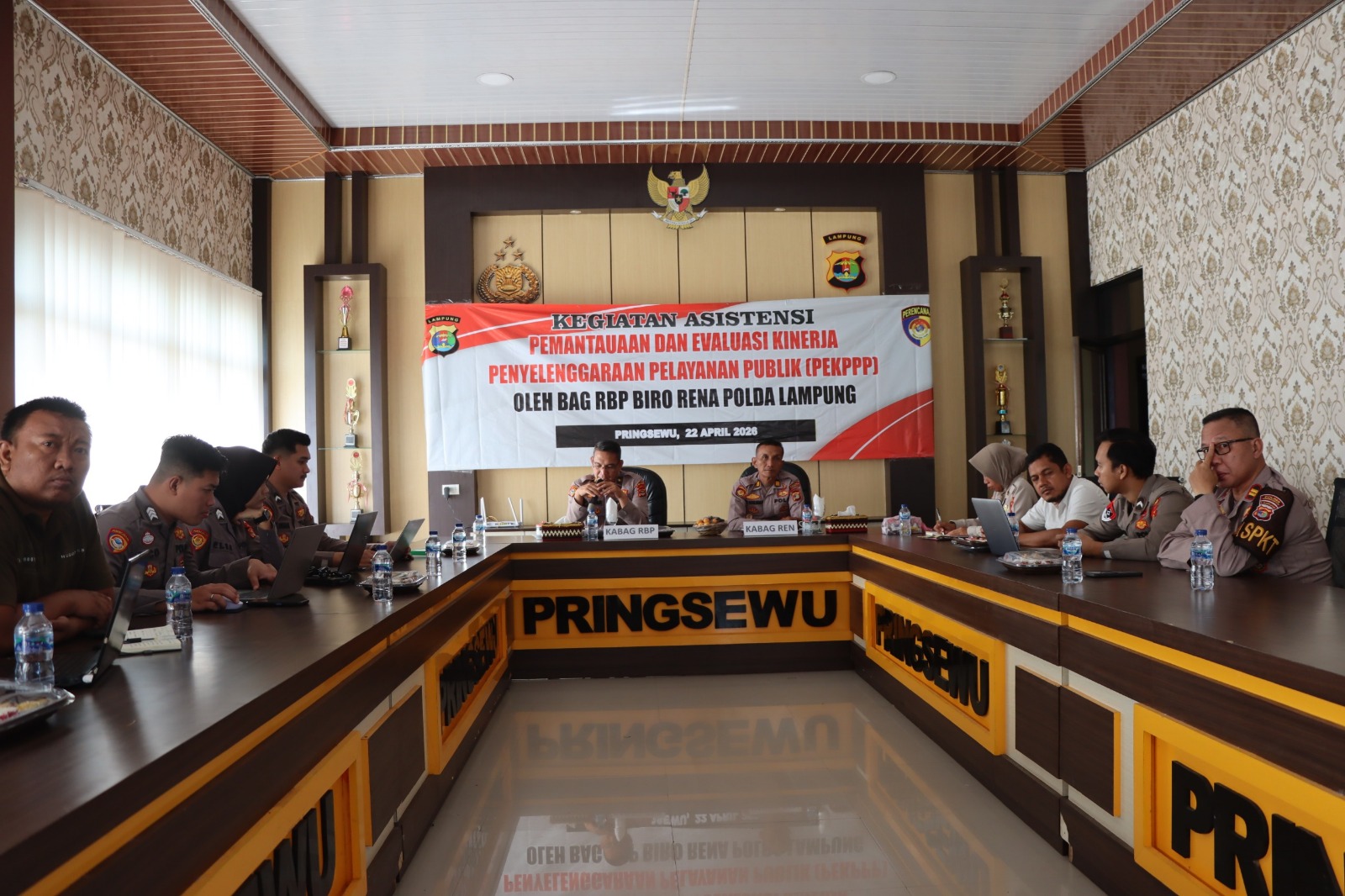 Pringsewu – Upaya pembenahan layanan publik terus digenjot jajaran kepolisian. Kali ini, Tim Bagian Reformasi Birokrasi Polri (RBP) Biro Perencanaan Polda Lampung turun langsung ke Polres Pringsewu, Rabu (22/4/2026), untuk melakukan asistensi, pemantauan, dan evaluasi kinerja pelayanan publik.